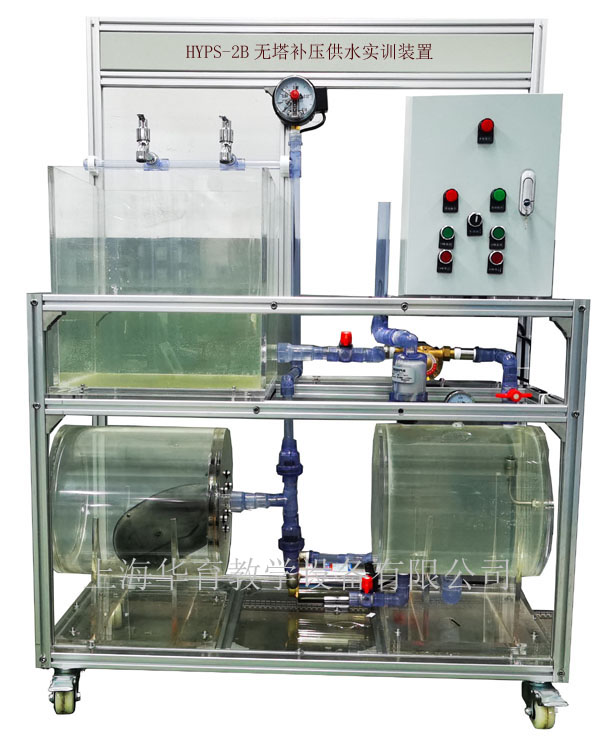 HYPS-2B無(wú)塔補(bǔ)壓供水實(shí)訓(xùn)裝置一、基本參數(shù)1 、整體采用鋁型材結(jié)構(gòu)支架,安裝穩(wěn)固模型設(shè)備,如氣壓罐,小型水泵,透明管道等。2 、設(shè)備供水水壓 0.05-0.
