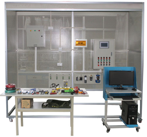 該設(shè)備主要由模擬房、實(shí)訓(xùn)冰箱、實(shí)訓(xùn)空調(diào)、裝配桌、電腦桌、模塊架、工具配件組成。