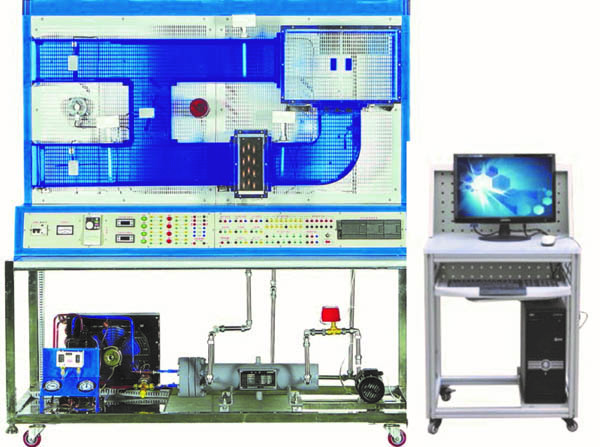 本實訓(xùn)裝置由實訓(xùn)臺、安裝網(wǎng)孔板、制冷系統(tǒng)、循環(huán)水系統(tǒng)、空氣處理系統(tǒng)、自控系統(tǒng)和上位監(jiān)控工程等組成
